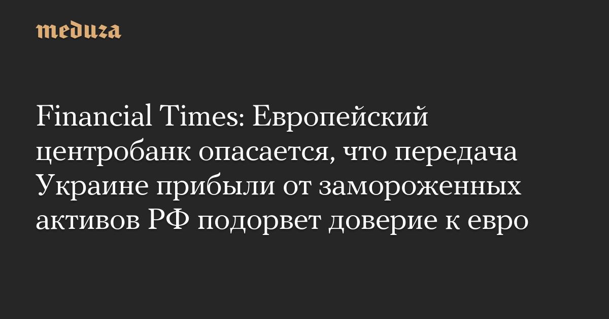 Financial Times: Европейский центробанк опасается, что передача Украине прибыли от замороженных активов РФ подорвет доверие к евро
