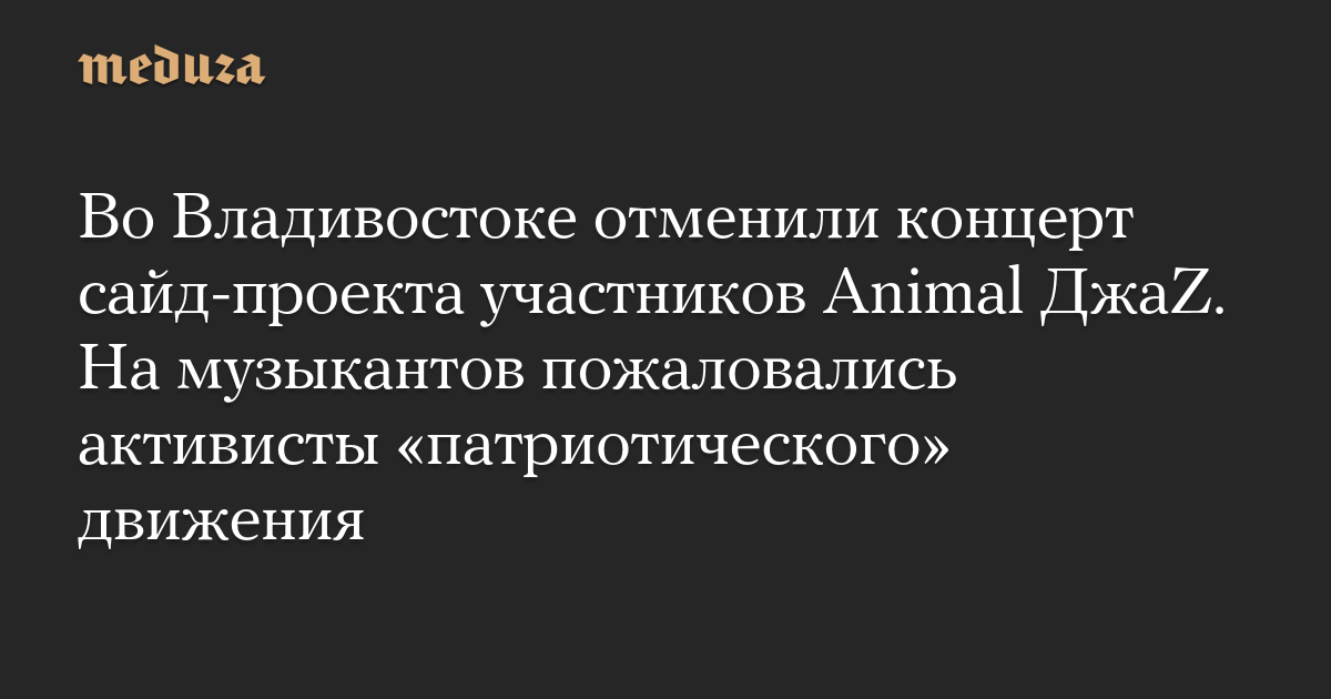 Во Владивостоке отменили концерт сайд-проекта участников Animal ДжаZ. На музыкантов пожаловались активисты «патриотического» движения