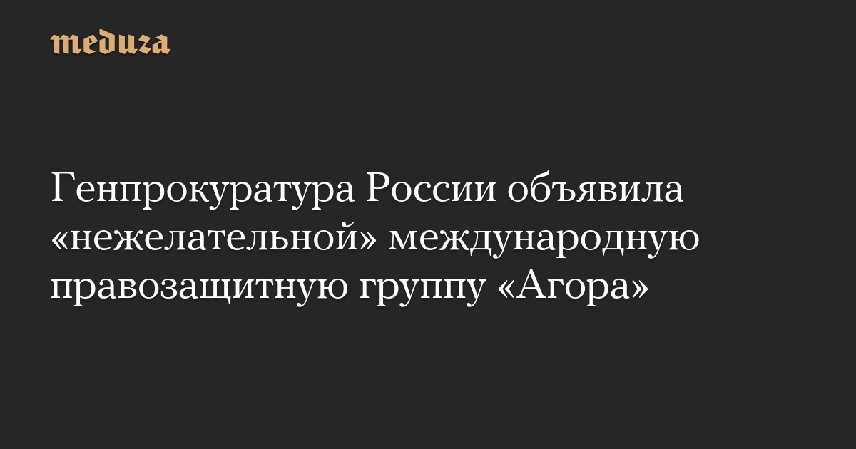 Генпрокуратура России объявила «нежелательной» международную правозащитную группу «Агора»