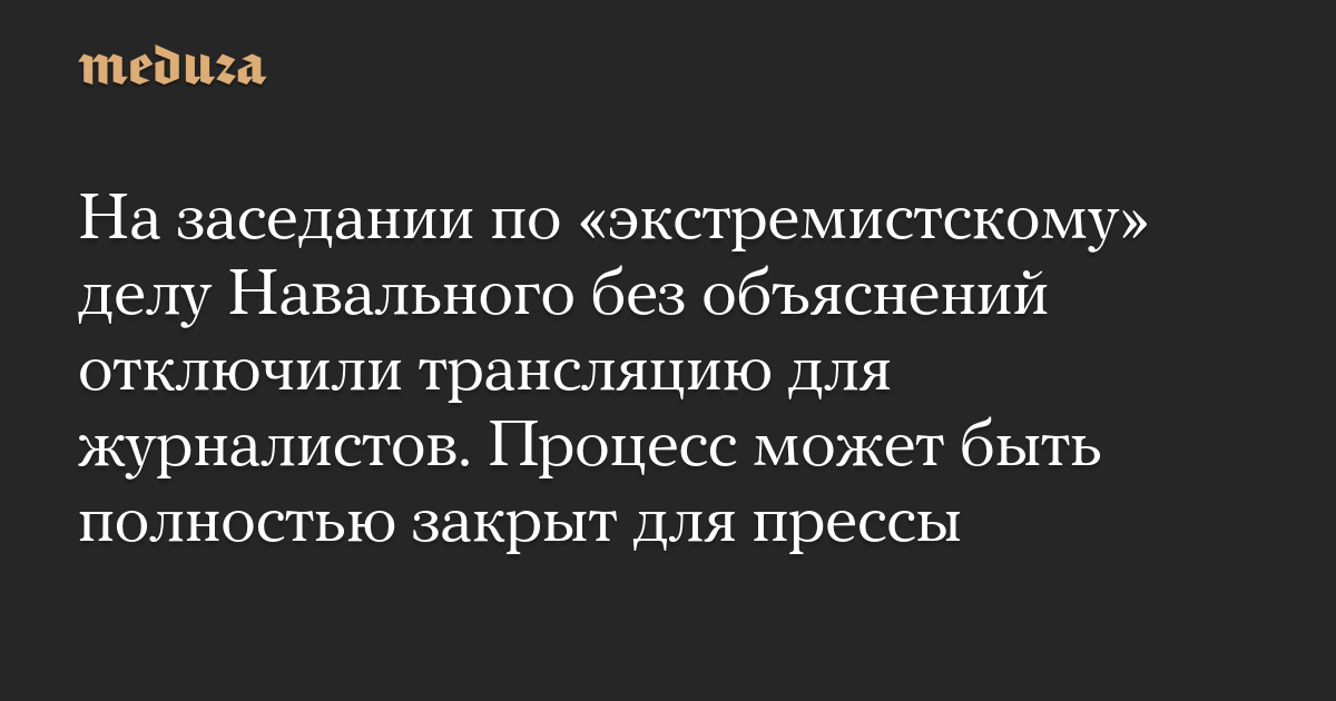 На заседании по «экстремистскому» делу Навального без объяснений отключили трансляцию для журналистов. Процесс может быть полностью закрыт для прессы