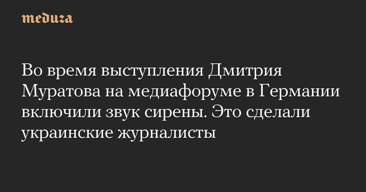 Во время выступления Дмитрия Муратова на медиафоруме в Германии включили звук сирены. Это сделали украинские журналисты