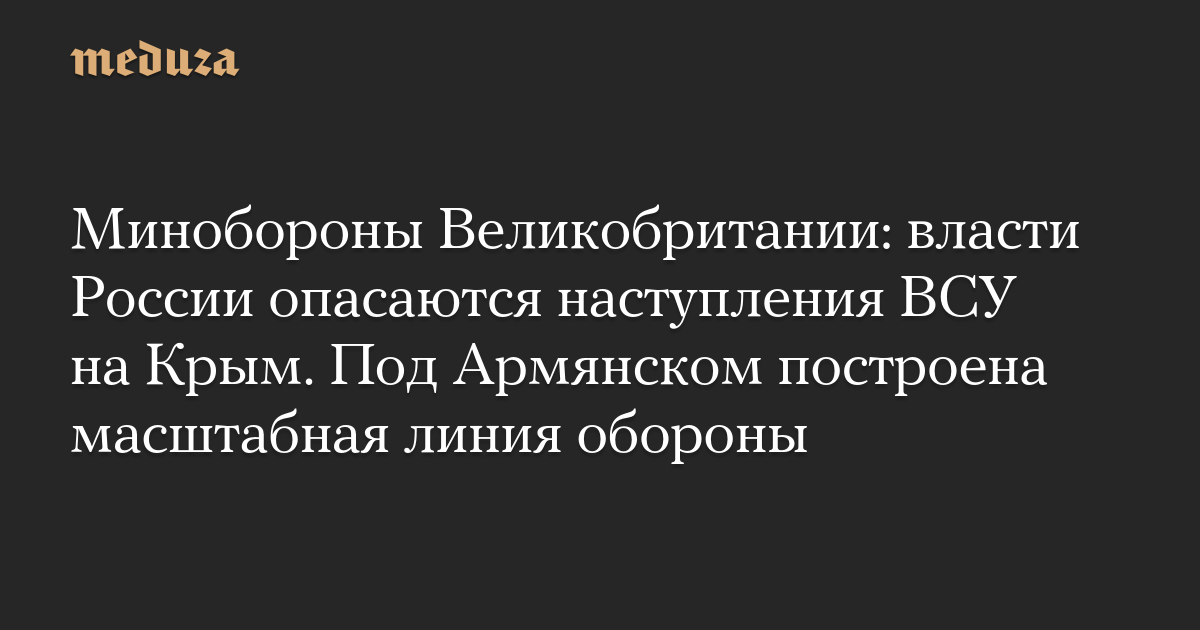 Минобороны Великобритании: власти России опасаются наступления ВСУ на Крым. Под Армянском построена масштабная линия обороны