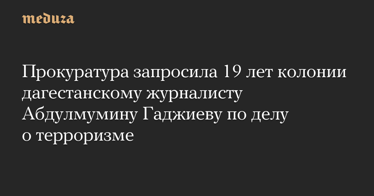 В ходе прений в Южном окружном военном суде представитель прокуратуры запросил 19 лет колонии строгого режима Абдулмумину Гаджиеву, работавшему редактором в газете «Черновик». Об этом сообщили в группе поддержки дагестанского журналиста.