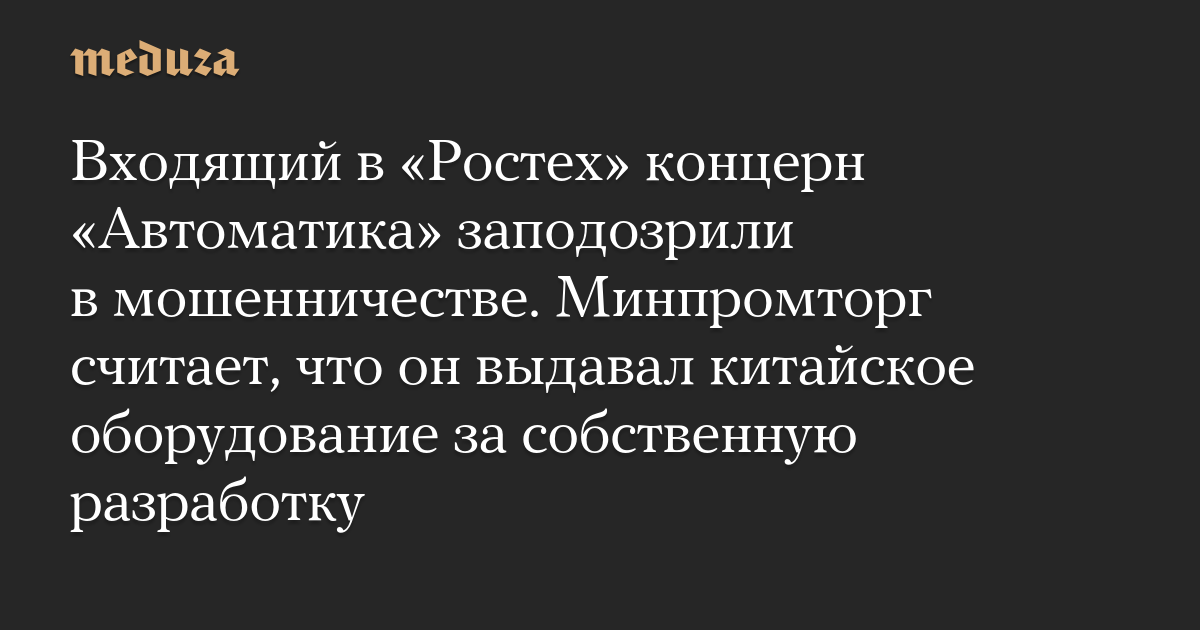 Входящий в «Ростех» концерн «Автоматика» заподозрили в мошенничестве. Минпромторг считает, что он выдавал китайское оборудование за собственную разработку