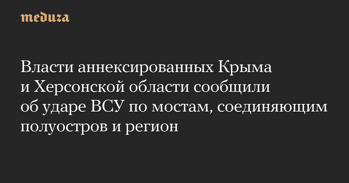 Власти аннексированных Крыма и Херсонской области сообщили, что украинская армия нанесла удар по мостам, соединяющим полуостров и область.