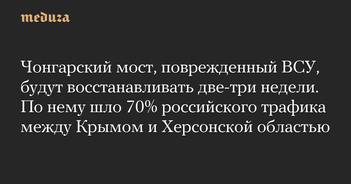 Чонгарский мост, поврежденный ВСУ, будут восстанавливать две-три недели. По нему шло 70% российского трафика между Крымом и Херсонской областью