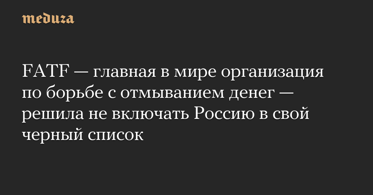 FATF — главная в мире организация по борьбе с отмыванием денег — решила не включать Россию в свой черный список