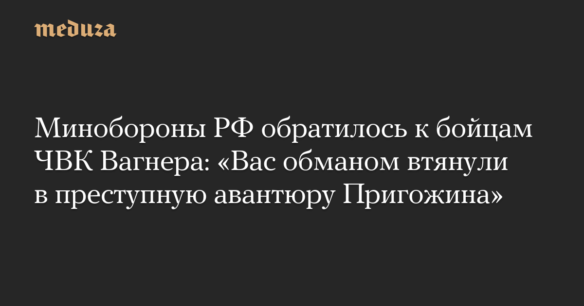 Минобороны РФ обратилось к бойцам ЧВК Вагнера: «Вас обманом втянули в преступную авантюру Пригожина»