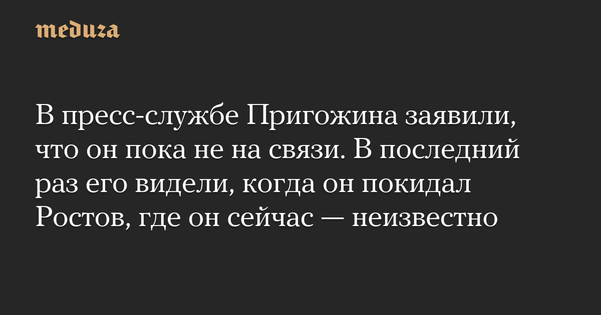 В пресс-службе Пригожина заявили, что он пока не на связи. В последний раз его видели, когда он покидал Ростов, где он сейчас — неизвестно