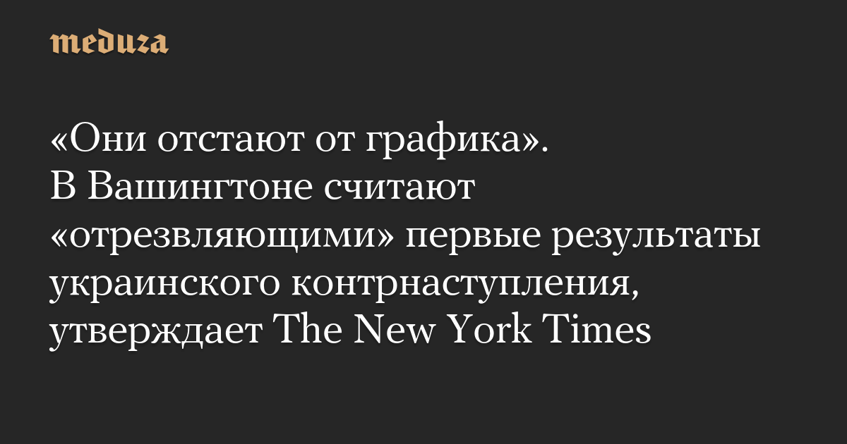 «Они отстают от графика», — прокомментировал итоги первых двух недель контрнаступления высокопоставленный представитель администрации президента США, назвав результаты «отрезвляющими».