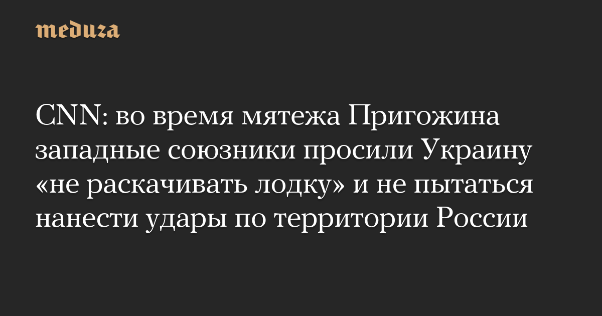 CNN: во время мятежа Пригожина западные союзники просили Украину «не раскачивать лодку» и не пытаться нанести удары по территории России