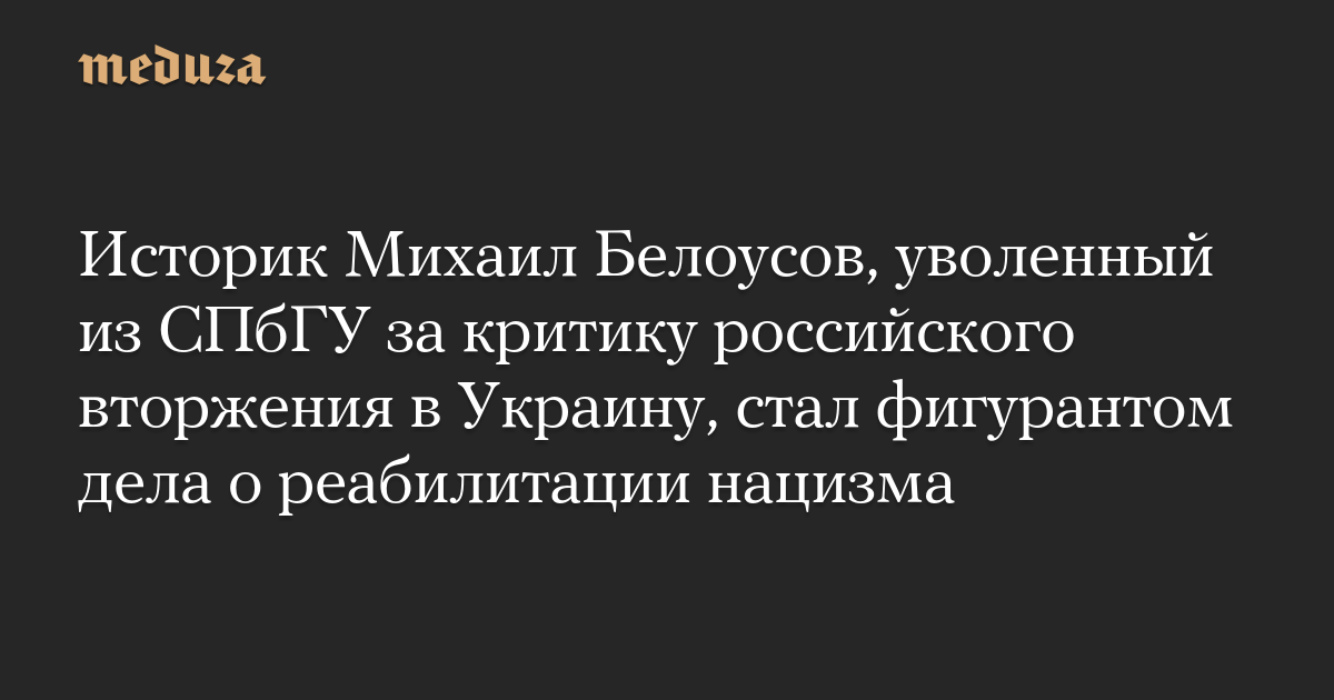 В отношении историка Михаила Белоусова, уволенного из СПбГУ за критику российского вторжения в Украину, завели уголовное дело о реабилитации нацизма, сообщают Baza, 78.ru и «Фонтанка».