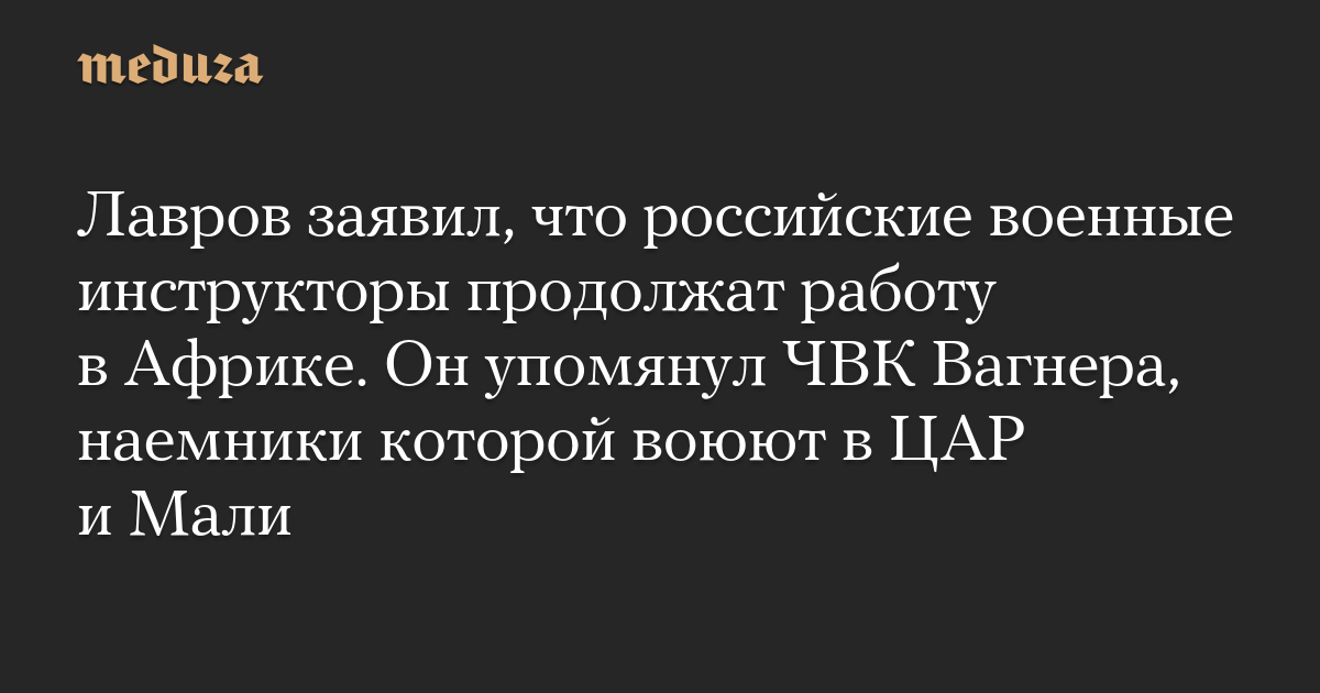 Лавров заявил, что российские военные инструкторы продолжат работу в Африке. Он упомянул ЧВК Вагнера, наемники которой воюют в ЦАР и Мали