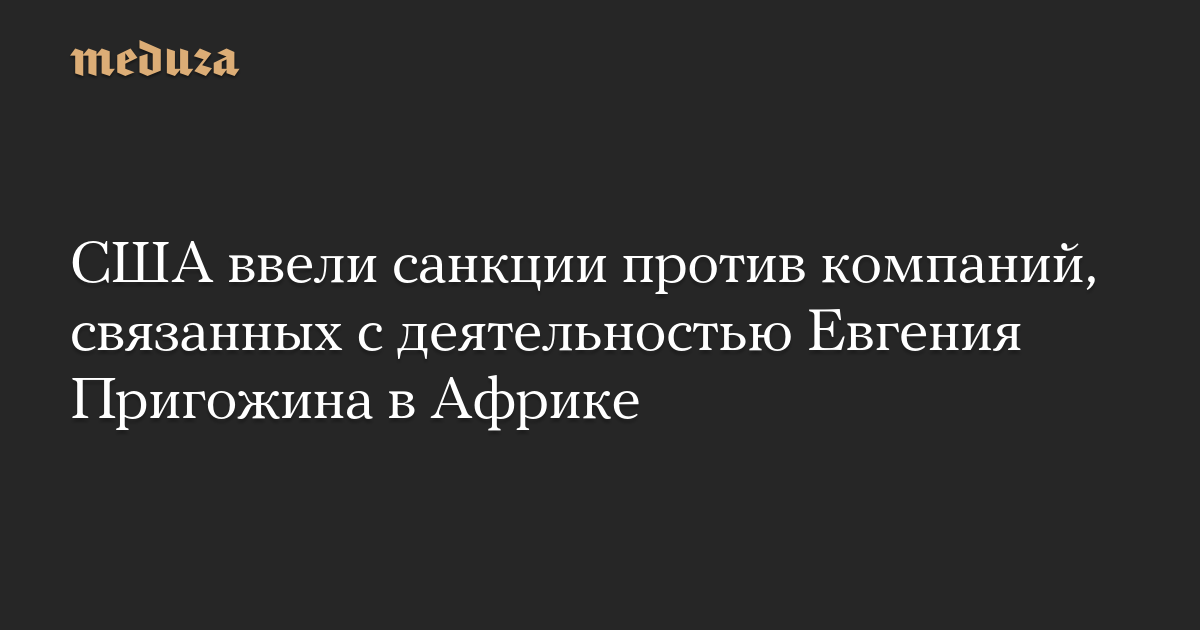 США ввели санкции против компаний, связанных с деятельностью Евгения Пригожина в Африке