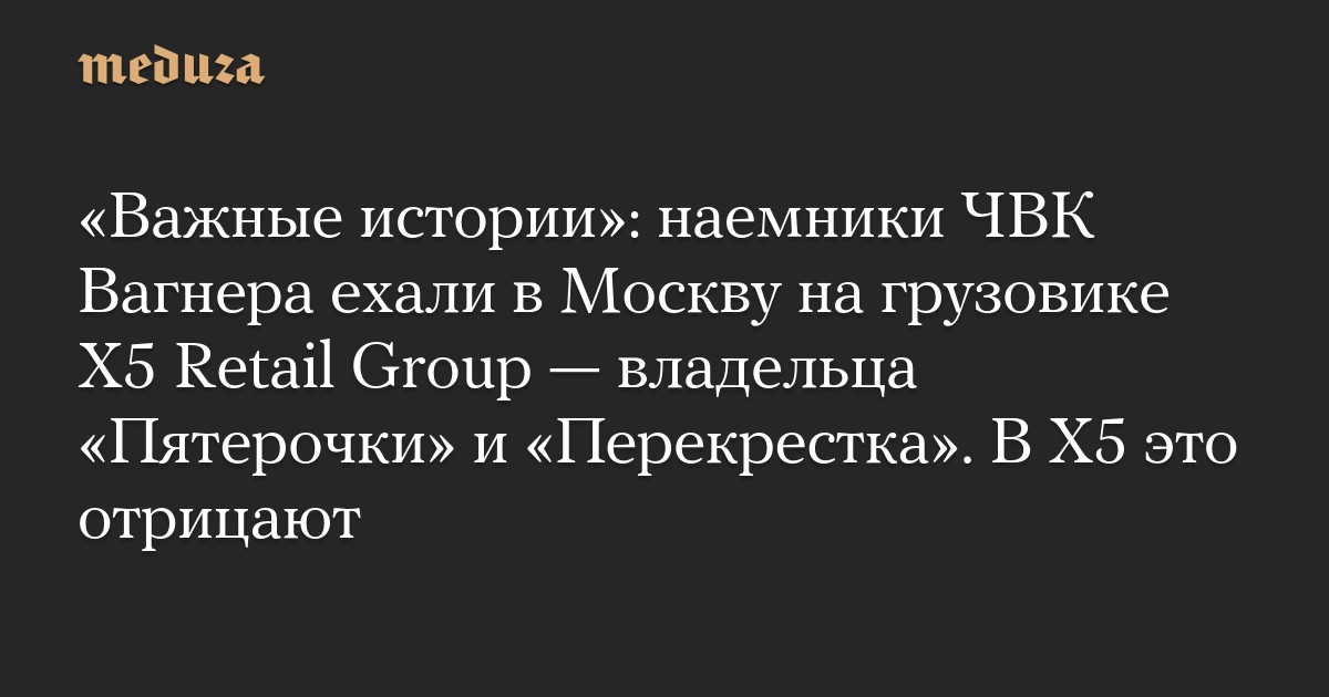 «Важные истории»: наемники ЧВК Вагнера ехали в Москву на грузовике X5 Retail Group — владельца «Пятерочки» и «Перекрестка». В X5 это отрицают