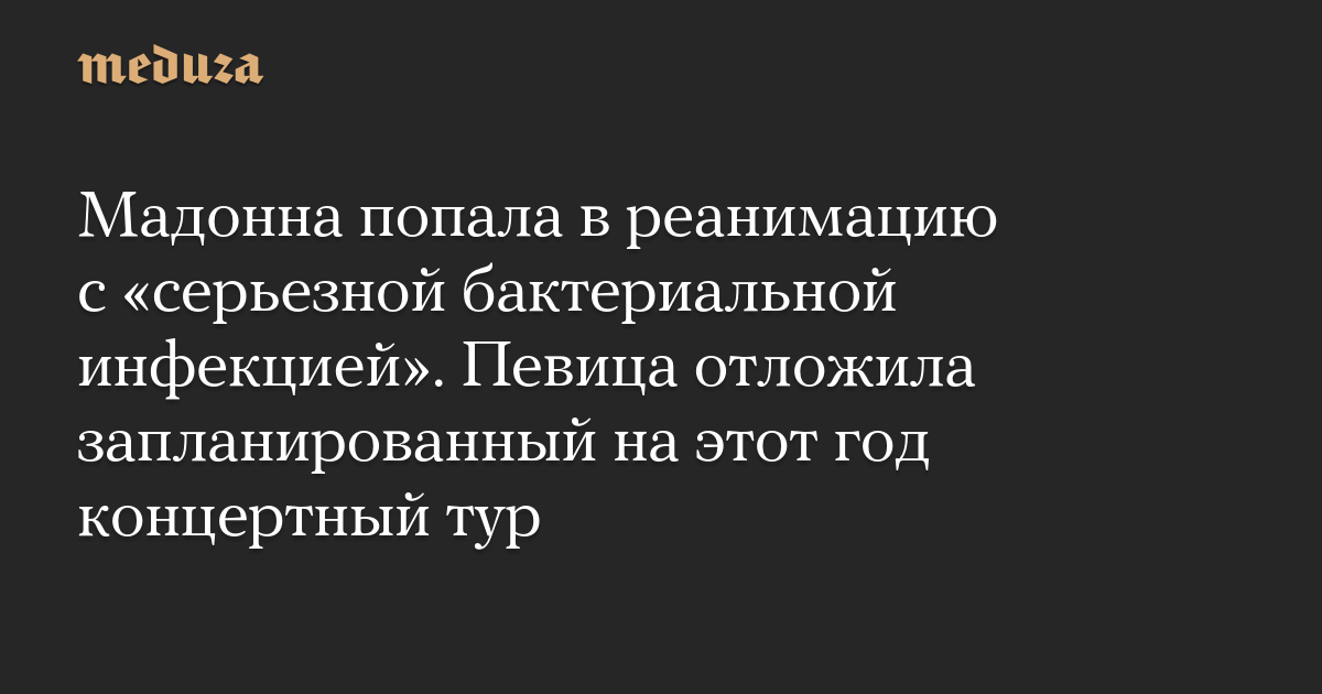 Мадонна попала в реанимацию с «серьезной бактериальной инфекцией». Певица отложила запланированный на этот год концертный тур