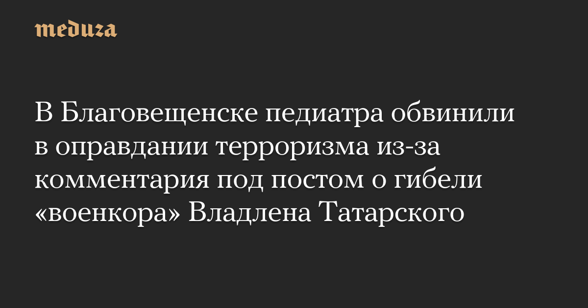 В Благовещенске педиатра обвинили в оправдании терроризма из-за комментария под постом о гибели «военкора» Владлена Татарского