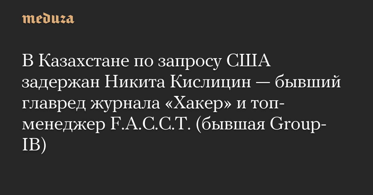 В Казахстане по запросу США задержан Никита Кислицин — бывший главред журнала «Хакер» и топ-менеджер F.A.C.C.T. (бывшая Group-IB)