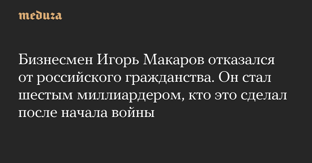 Бизнесмен Игорь Макаров отказался от российского гражданства. Он стал шестым миллиардером, кто это сделал после начала войны