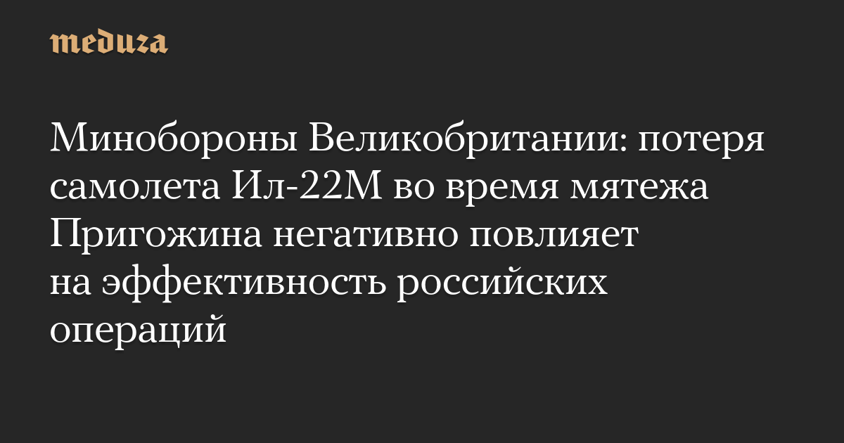 Минобороны Великобритании: потеря самолета Ил-22М во время мятежа Пригожина негативно повлияет на эффективность российских операций