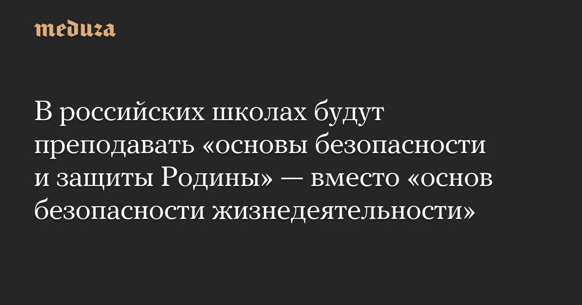 В российских школах будут преподавать «основы безопасности и защиты Родины» — вместо «основ безопасности жизнедеятельности»