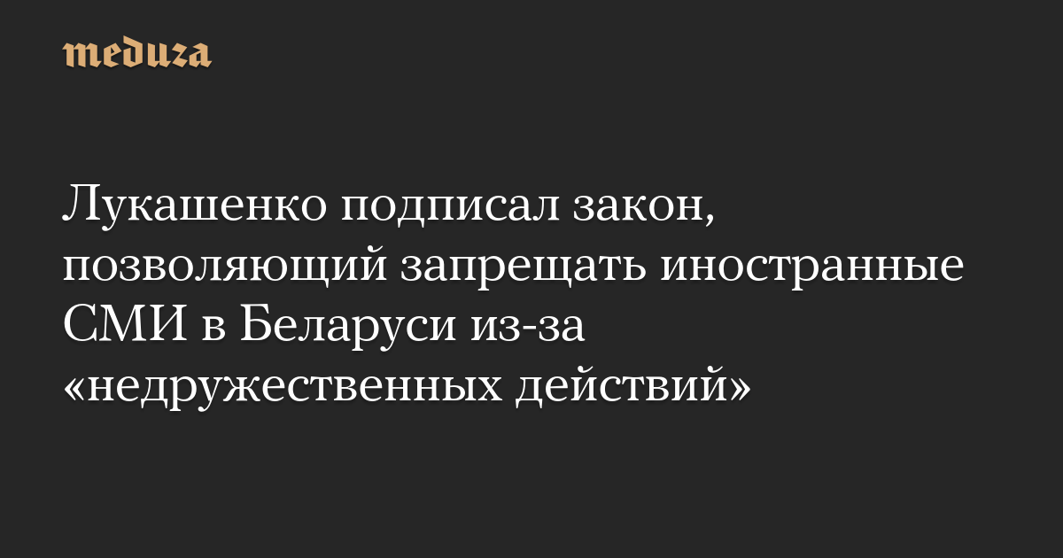 Александр Лукашенко подписал закон, позволяющий властям Беларуси запрещать деятельность иностранных СМИ в случае, если иностранные государства совершат «недружественные действия» в отношении белорусских СМИ.