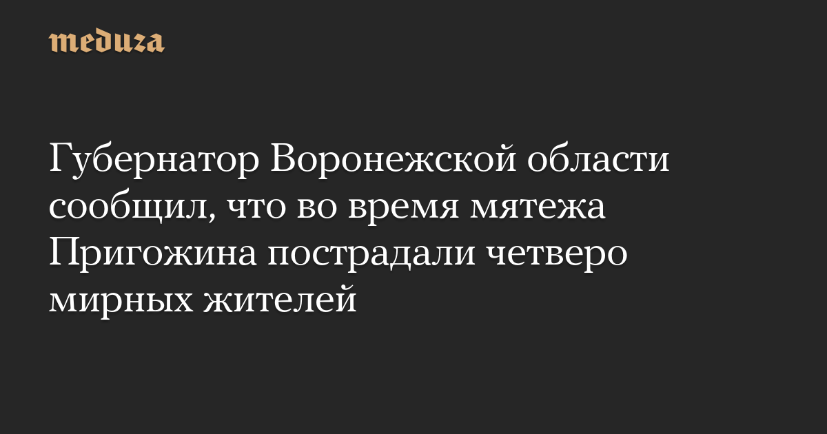 Глава Воронежской области Александр Гусев сообщил, что во время мятежа, поднятого основателем ЧВК Вагнера Евгением Пригожиным 23 июня, пострадали четверо жителей региона, в том числе один ребенок.