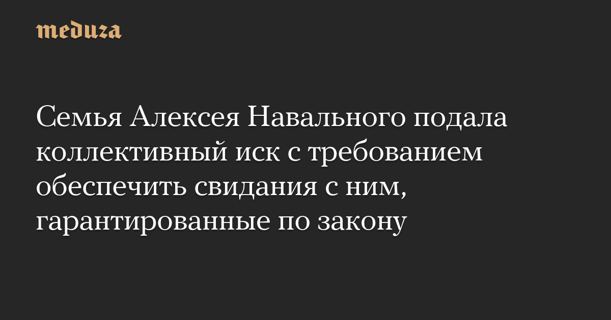Семья Алексея Навального подала коллективный иск с требованием обеспечить свидания с ним, гарантированные по закону