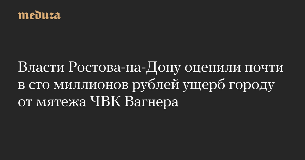 Власти Ростова-на-Дону оценили почти в сто миллионов рублей ущерб городу от мятежа ЧВК Вагнера