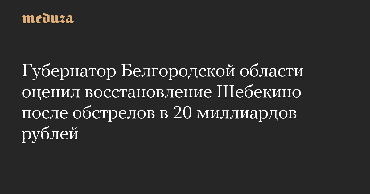 Губернатор Белгородской области Вячеслав Гладков заявил, что на восстановление жилья, предприятий и социальных объектов в городе Шебекино после обстрелов нужно не менее 20 миллиардов рублей, сообщает ТАСС.