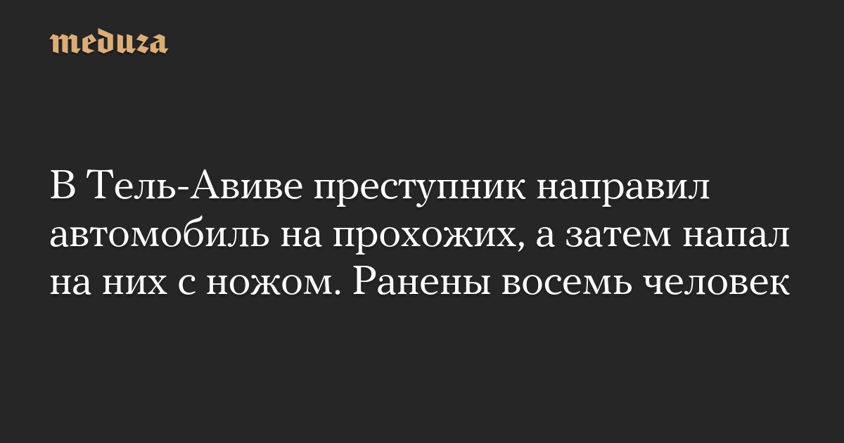 В Тель-Авиве преступник направил автомобиль на прохожих, а затем напал на них с ножом. Ранены восемь человек