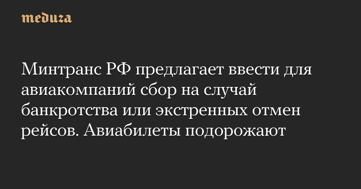 Минтранс РФ предлагает ввести для авиакомпаний сбор на случай банкротства или экстренных отмен рейсов. Авиабилеты подорожают