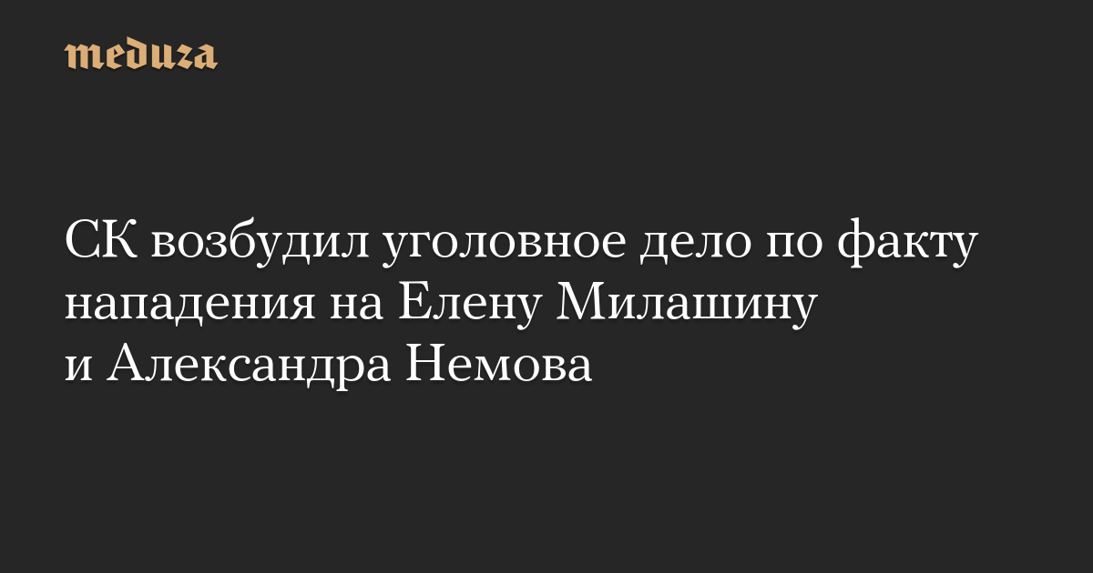 СК возбудил уголовное дело по факту нападения на Елену Милашину и Александра Немова
