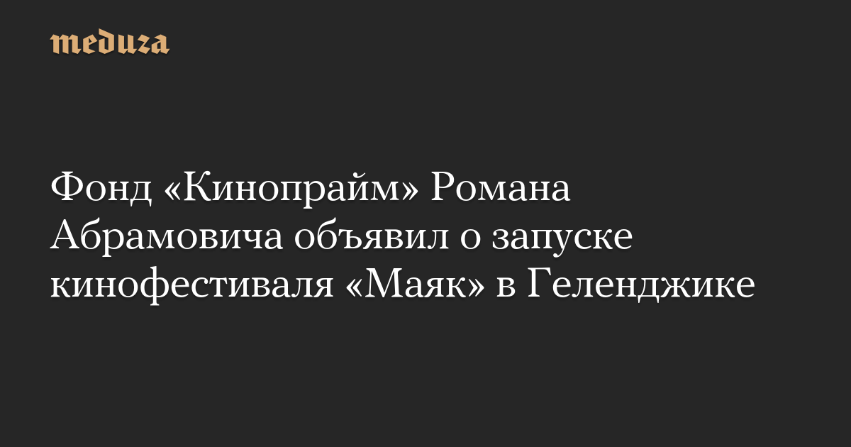 Фонд «Кинопрайм» Романа Абрамовича объявил о запуске кинофестиваля «Маяк» в Геленджике