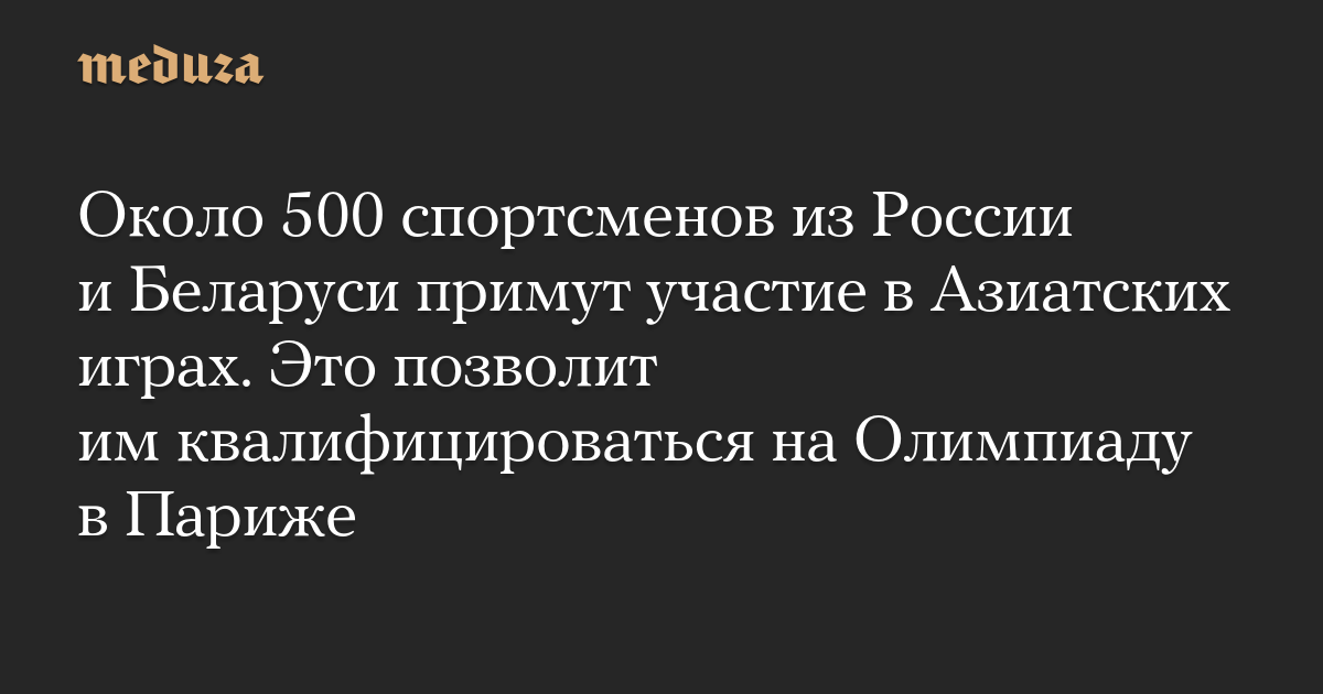 Около 500 спортсменов из России и Беларуси примут участие в Азиатских играх. Это позволит им квалифицироваться на Олимпиаду в Париже