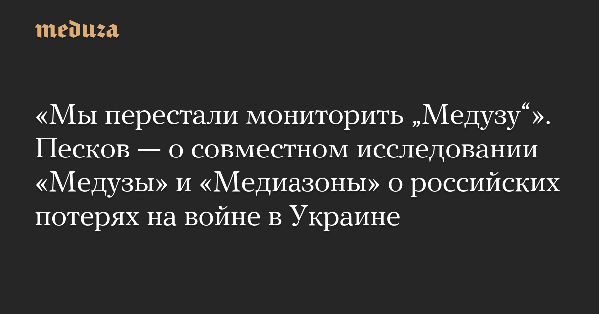 «Мы перестали мониторить „Медузу“». Песков — о совместном исследовании «Медузы» и «Медиазоны» о российских потерях на войне в Украине