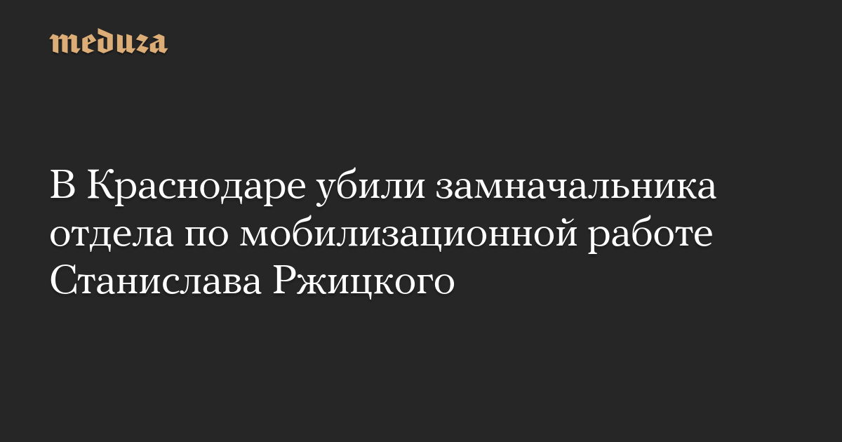 В Краснодаре убит заместитель начальника городского отдела по мобилизационной работе Станислав Ржицкий, сообщили телеграм-каналы Shot, Baza и Mash.
