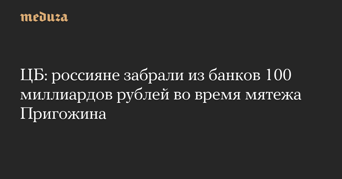 ЦБ: россияне забрали из банков 100 миллиардов рублей во время мятежа Пригожина