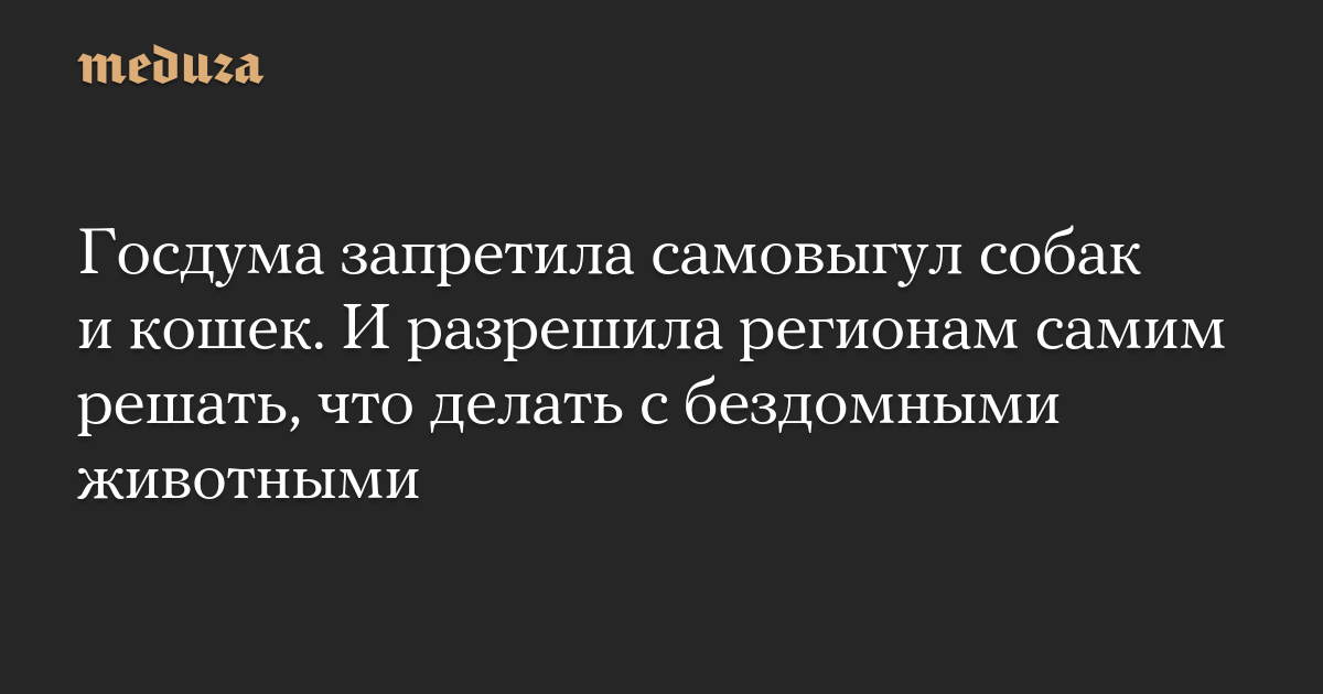 Госдума запретила самовыгул собак и кошек. И разрешила регионам самим решать, что делать с бездомными животными