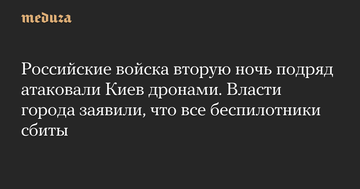 Российские войска вторую ночь подряд атаковали Киев дронами. Власти города заявили, что все беспилотники сбиты