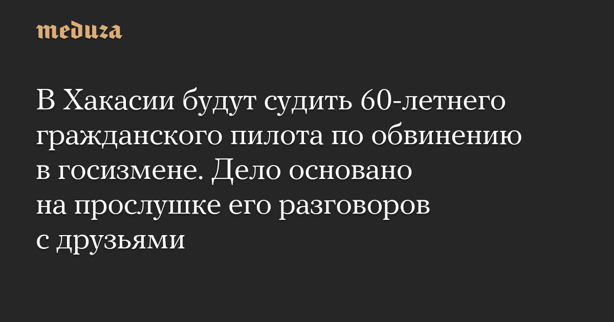 В Хакасии будут судить 60-летнего гражданского пилота по обвинению в госизмене. Дело основано на прослушке его разговоров с друзьями
