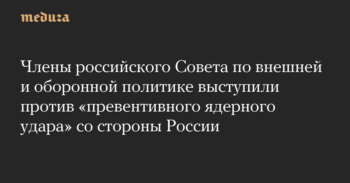 Члены Совета по внешней и оборонной политике 13 июля опубликовали заявление, в котором выступили против «превентивного ядерного удара» со стороны России.