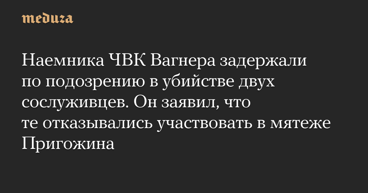 Наемника ЧВК Вагнера задержали по подозрению в убийстве двух сослуживцев. Он заявил, что те отказывались участвовать в мятеже Пригожина