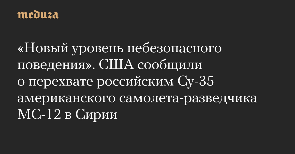 «Новый уровень небезопасного поведения». США сообщили о перехвате российским Су-35 американского самолета-разведчика МС-12 в Сирии