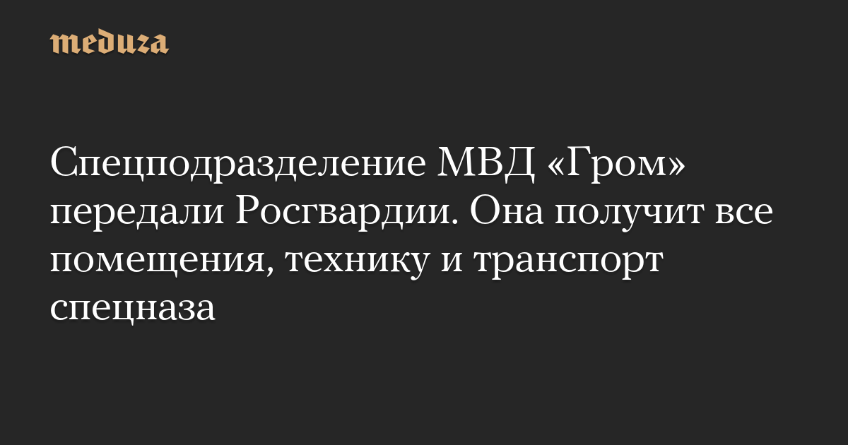 Как ранее сообщали источники «Ведомостей, подготовка передачи «Грома» в Росгвардию началась после встречи Владимира Путина с руководством и личным составом Минобороны, Росгвардии, ФСБ, МВД и ФСО после мятежа Евгения Пригожина.