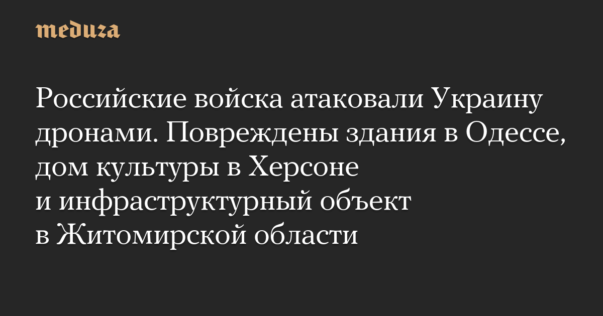 Российские войска атаковали Украину дронами. Повреждены здания в Одессе, дом культуры в Херсоне и инфраструктурный объект в Житомирской области