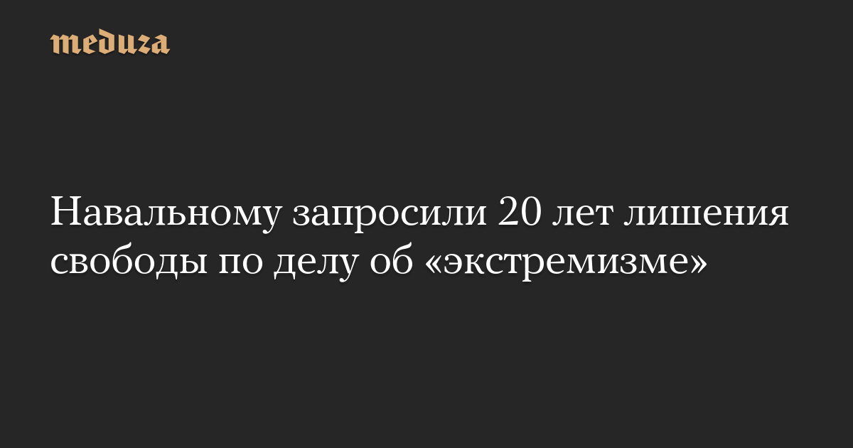 Государственный обвинитель потребовал приговорить Алексея Навального к 20 годам лишения свободы по делу об «экстремизме». Об этом сообщил соратник Навального Иван Жданов. По его словам, прокурор требует, чтобы Навальный отбывал срок в колонии особого режима.