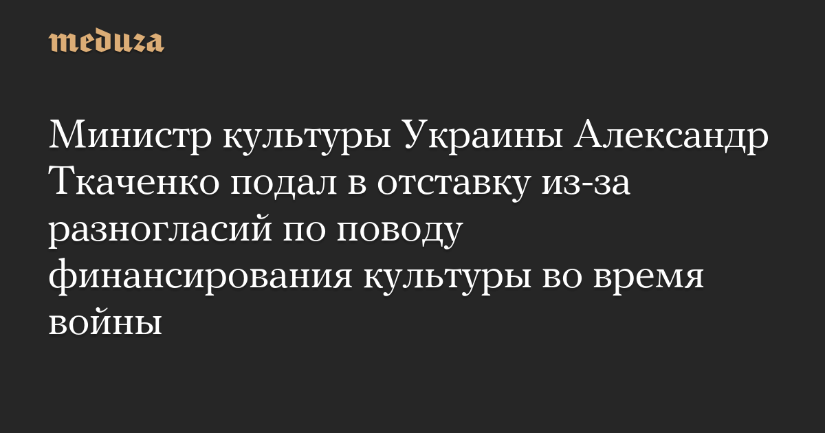 Министр культуры Украины Александр Ткаченко заявил, что подал заявление об отставке из-за разногласий по поводу государственного финансирования культуры во время полномасштабной войны.