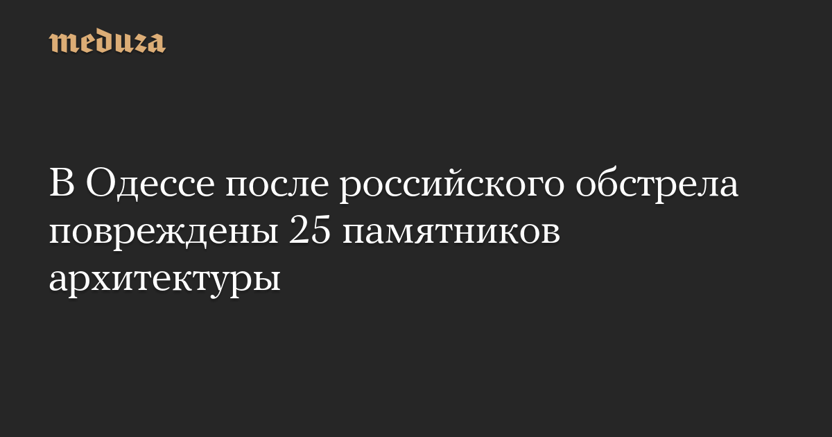 Как минимум 25 памятников архитектуры повреждены в центре Одессы в результате ракетного удара, нанесенного Минобороны РФ по городу в ночь на 23 июля. Об этом сообщает глава военной администрации Одесской области Олег Кипер.
