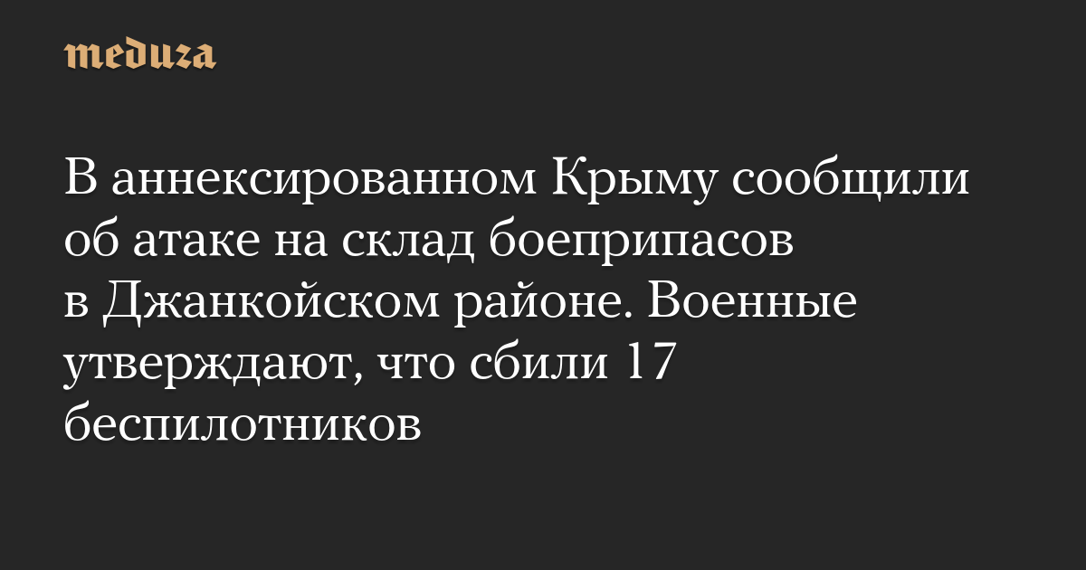 В аннексированном Крыму сообщили об атаке на склад боеприпасов в Джанкойском районе. Военные утверждают, что сбили 17 беспилотников